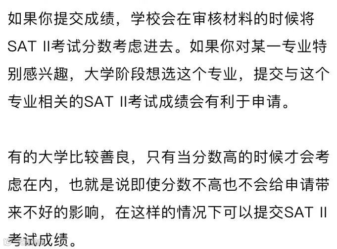 对于国际学生来说,提交SAT II考试成绩会为申请带来非常大的帮助,因为在审核过程中,只有SAT或ACT成绩是远远不够的。