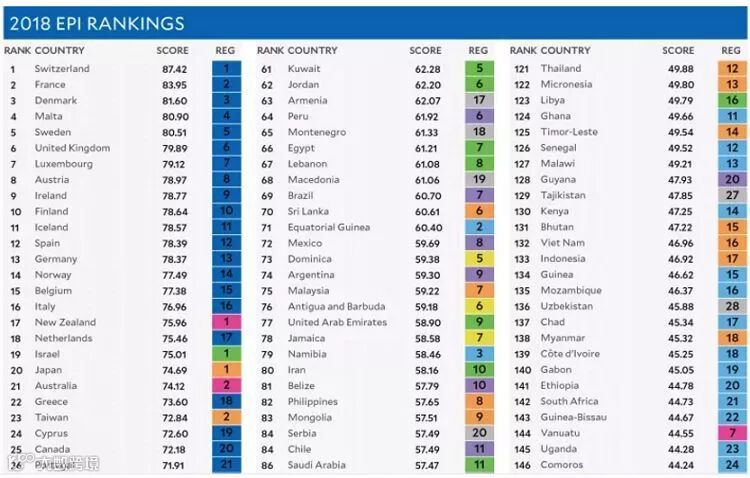 全球环境绩效指数,马耳他排名第四