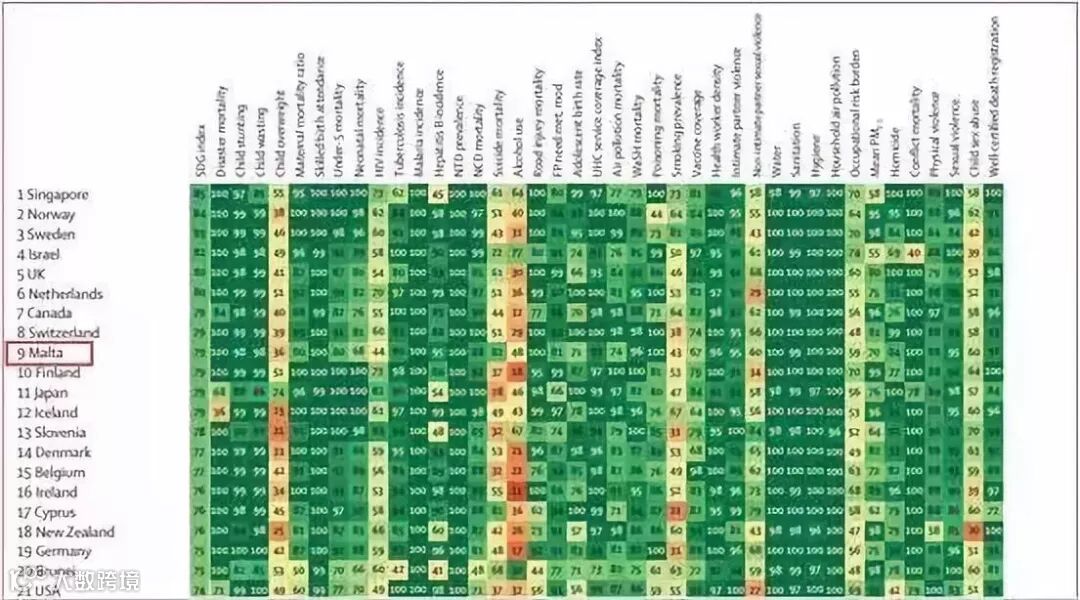 此次评估中,马耳他的表现比去年提高了五位,在评估的10个指标中获得满分,在28个领域获得80分,总体平均分79分。