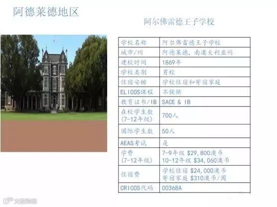 阿尔佛雷德王子学校成立于1869年,是一所在澳洲排名前十名的男子精英学校。学校拥有近150年的教育传统。坐落于市中心附近,步行可到商业区和阿德莱德大学;距离阿德莱德国际机场只有十五分钟车程。
