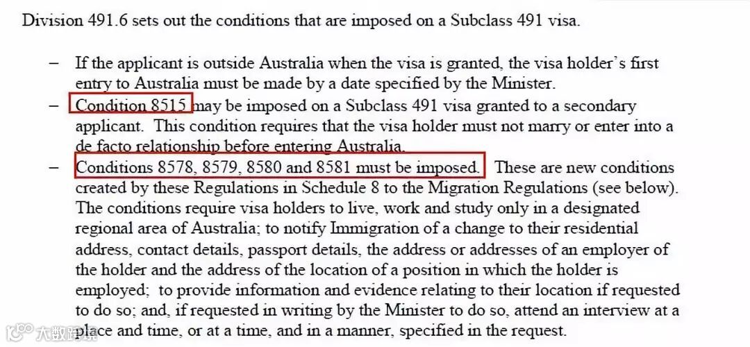 · 8579条款:签证持有人,只要在澳洲境内,只能在指定区域内生活,工作和学历,不能随意更换地区。这还包括副申请人(配偶及孩子),也必须在相同指定地区.