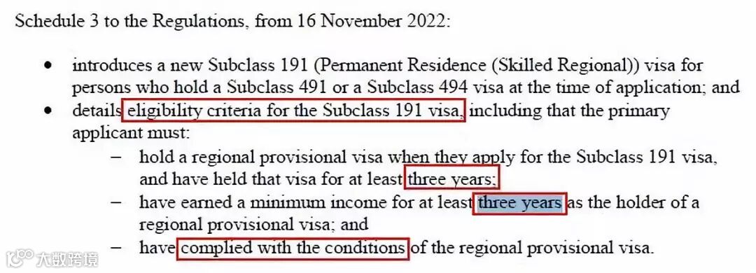 16/11/2022开始,494和491签证持有人,可以通过转191,最终获得PR。这正好是新偏远地区签证491和494实施后的3年,这再一次明确了,新偏远地区2类签证,必须等待3年,才可以最终获得PR。