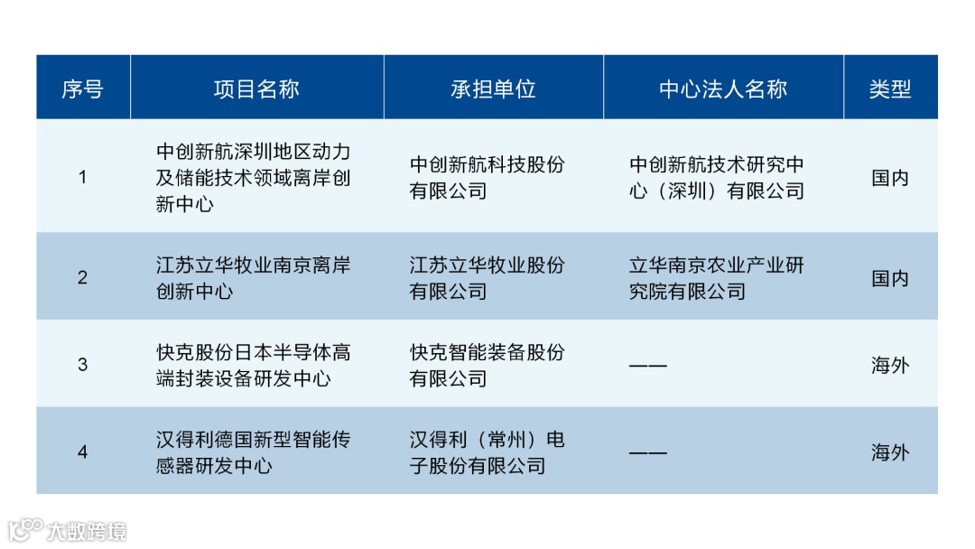 (支持离岸创新中心建设)拟支持项目