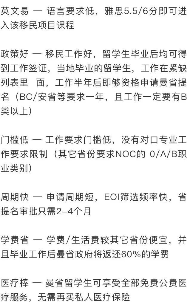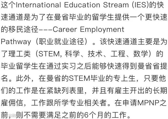 总得来说能看出来曼省这次的改变体现出了对于人才的要求,虽然政策没有以前宽松,但是相对于以前无论是省内还是省外的留学生都需要工作半年来说,现在省内的学生只要是在STEM下面读书,有一年以前的雇主信或者完成实习即可不用工作。这明显对于本省的理科生优待于以前。