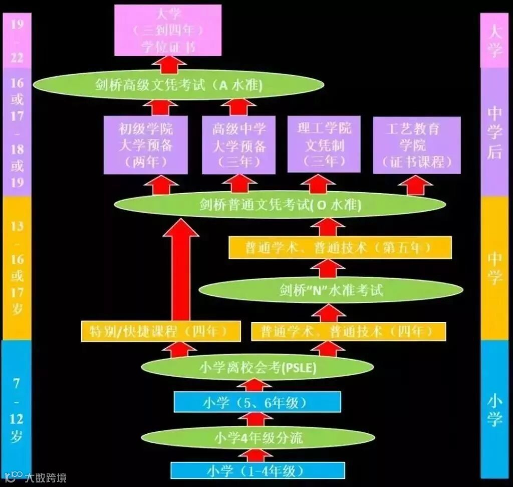 以上各种班级符合要求的学生在中四毕业时要举行统考,成绩最优的10 %学生进入初级学院(类似我国的普通高中);