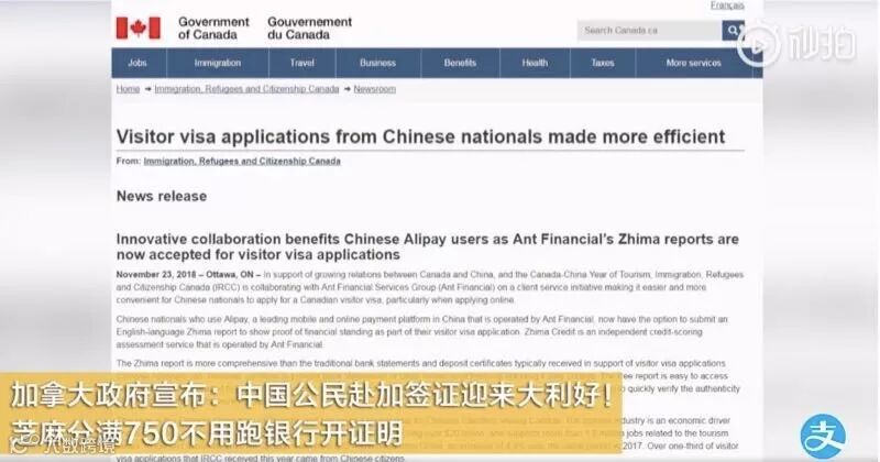 此前,中国公民如申请加拿大签证,在财力证明方面,需准备近6个月的活期对账单及冻结3个月不低于5万元的银行存款证明单等材料。现在芝麻分满750分的加拿大签证申请者便可以免交其他财务证明。