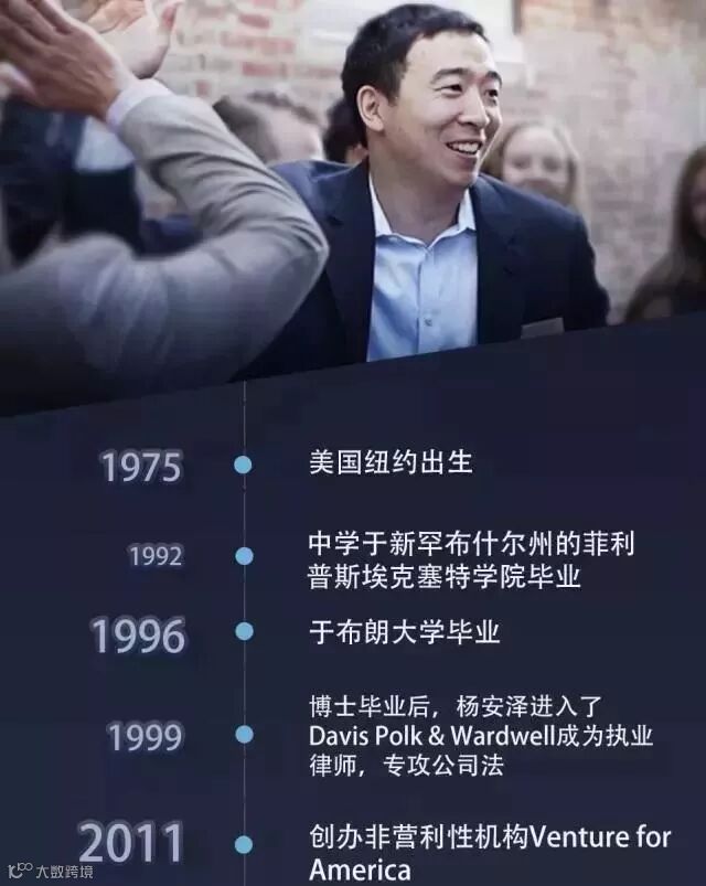 杨安泽本身是纽约的企业家,就读于布朗大学,后毕业于哥伦比亚大学法学院。