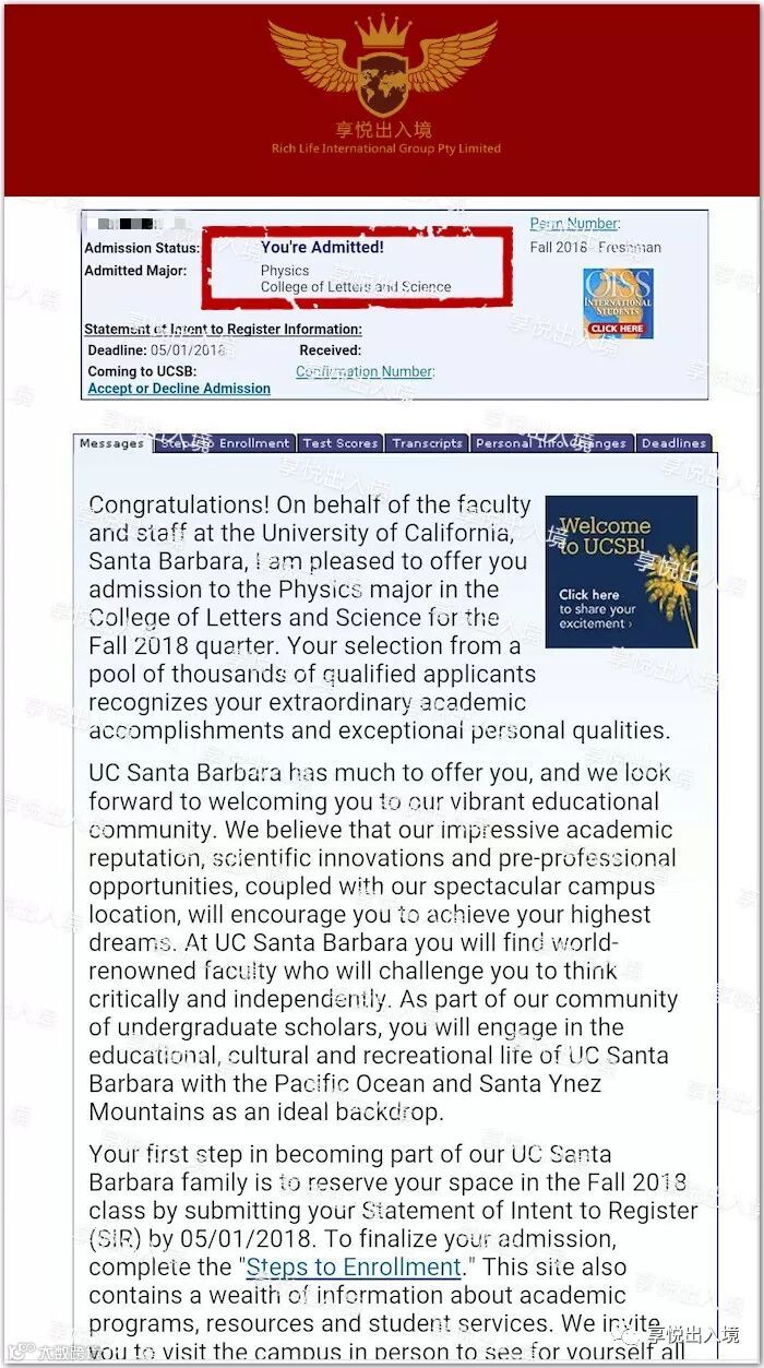 加州大学圣巴巴拉分校被美国新闻与世界报道列入美国最挑剔的学校的榜单。根据加州大学系统招生部统计,加州大学圣巴巴拉分校是2016年录取率为32.7%,是第3难申请的加州大学,仅次于伯克利与UCLA。2015年,圣塔芭芭拉加州大学收到了85,208份新生的申请[5],然而圣塔芭芭拉加州大学却只有不到5000个名额[6]。在2013年入学的本科生中,白人占39.6%,西班牙裔占24.2%,亚洲裔占24.2%,非洲裔占3.9%,国际学生占4%。