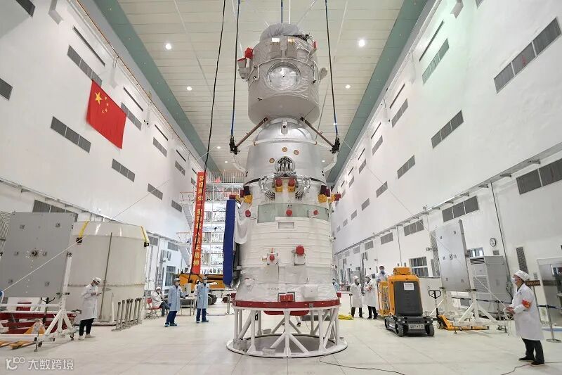 神舟十四号载人飞船吊装现场。杨卓 摄