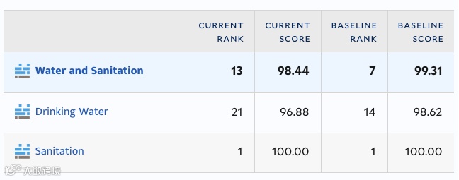 水资源更是以99.44近乎满分的成绩