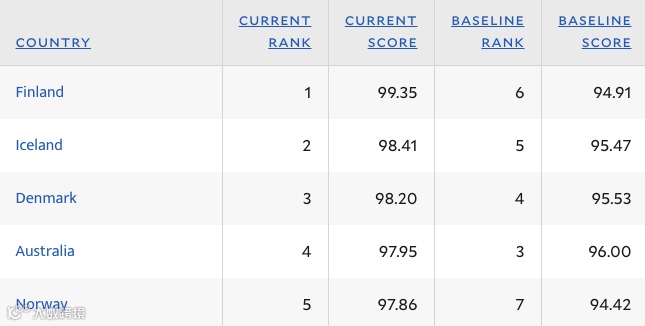 仅次于芬兰、冰岛、丹麦三国