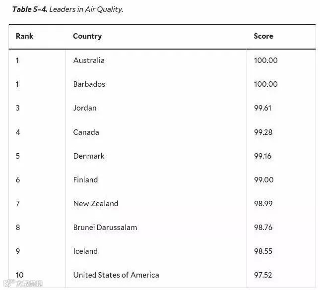空气质量排名中是,前十名的国家还有: