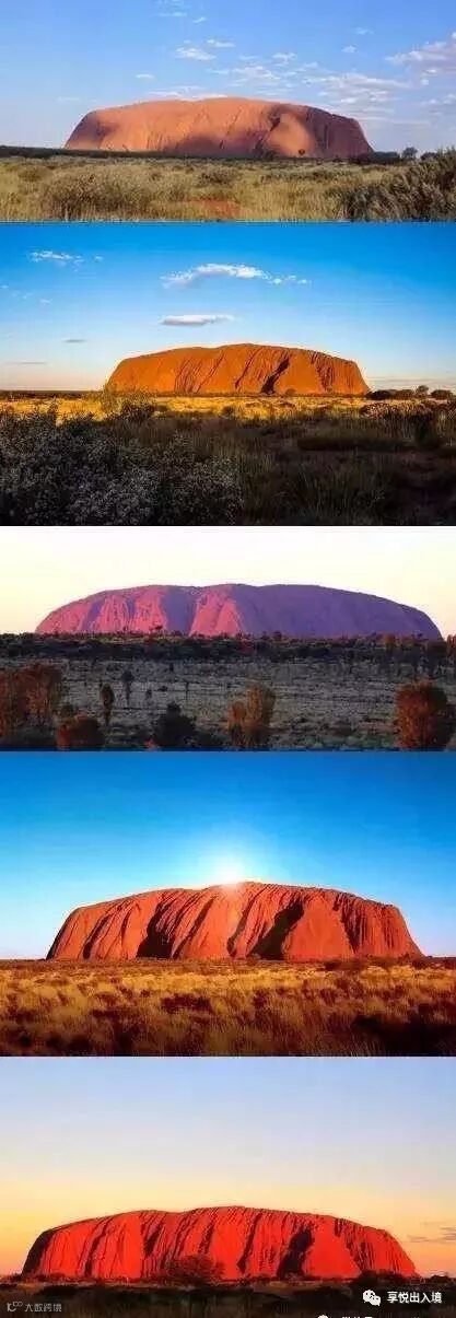 请一定记得拍照留念,因为日落时的光线变化很快,建议每5分钟拍摄一张乌鲁鲁的图片,记录它不断变化的色彩。