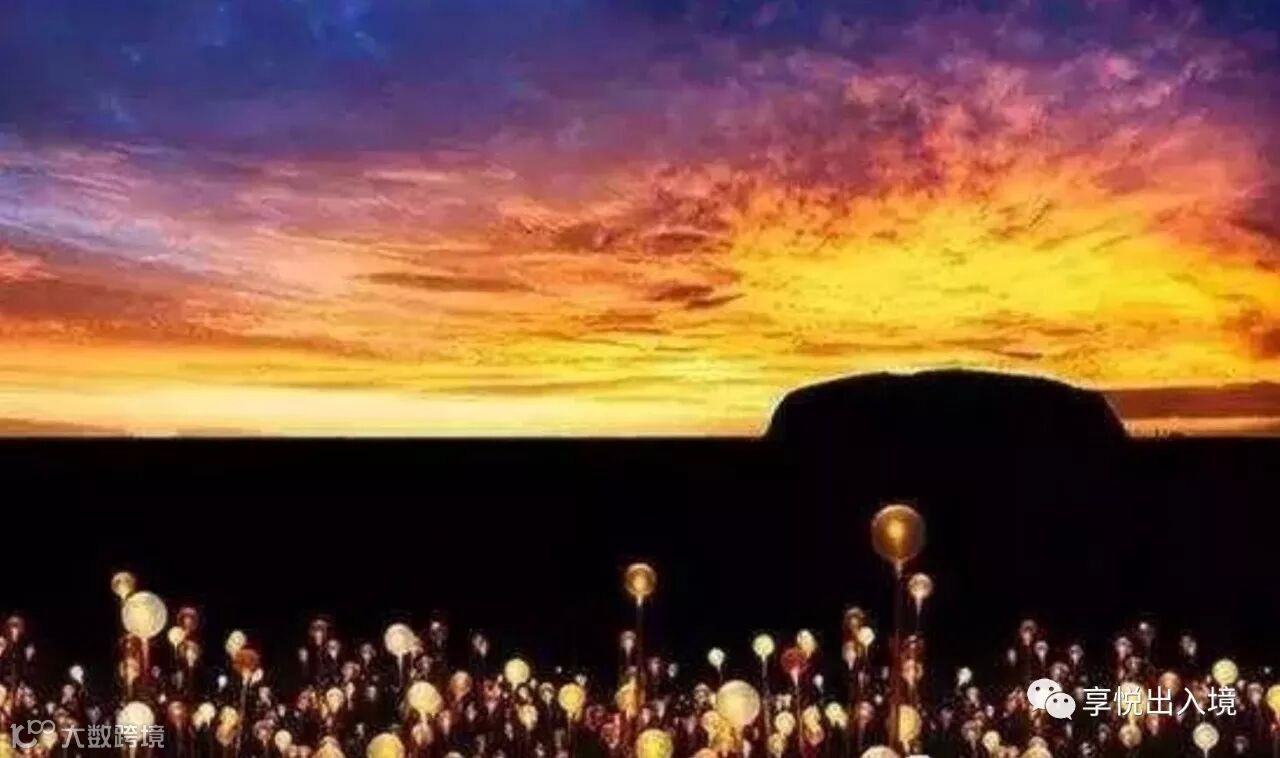 乌鲁鲁,世界十大日落地之一、世界九大最佳观星地之一。在这个安静惬意的沙漠境地,除了看无限壮美的日升日落,还能在原野星空下享受烛光晚餐和极具视觉震撼力的灯光秀。乌鲁鲁会让你的跨年夜有其他地方无法企及的别致,让你余生都念念不忘。