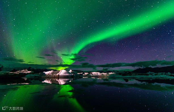 冰岛极光最美的地方在城镇之外,那里有着许多静谧的湖水,无论是倒影还是夜空,都能看到纯粹而炫美的极光。