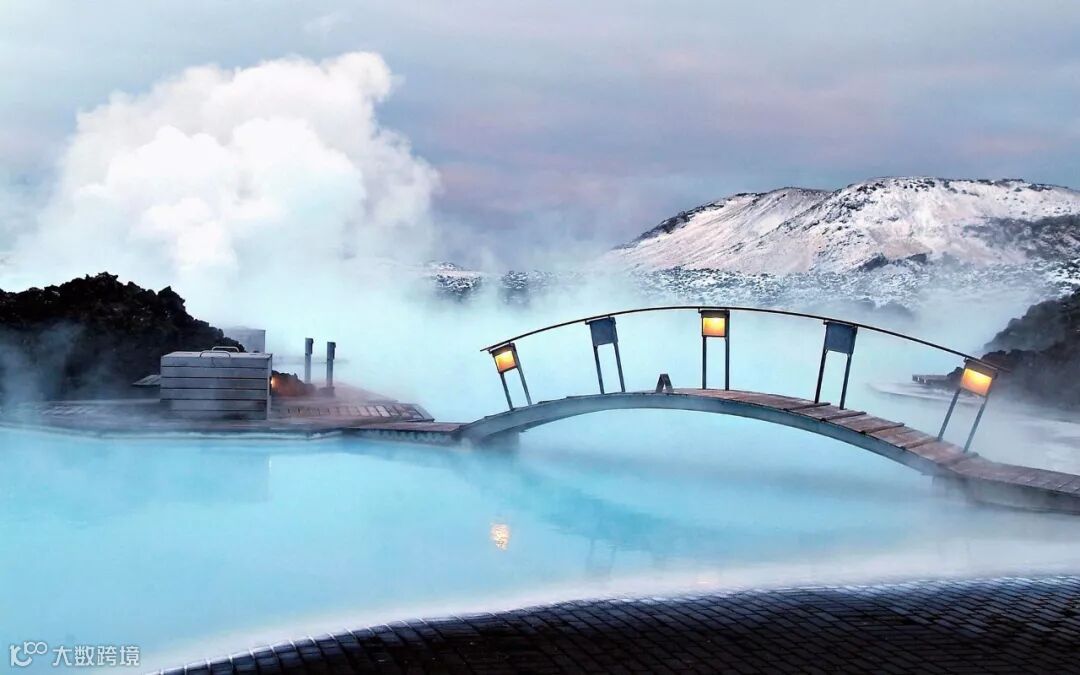谈起冰岛的温泉,一想到的就该是那牛奶蓝的温泉水蓝湖。蓝湖是冰岛著名的户外地热温泉,这里周围是形态各异的黑色火山石,湖水中含有的丰富矿物质,使湖水呈现幽幽的蓝色,显眼且醉人。