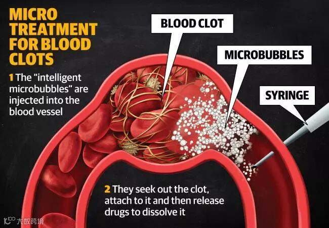 之后微泡会释放出特定的药物,快速将血块溶解。