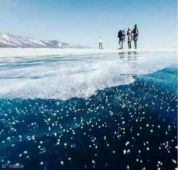 还有个与众不同的是冰层里的气泡,有意思的是这些气泡还有个有趣的名字——贝加尔湖里的珍珠。