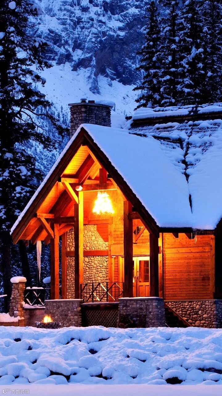 湖边,一排排木屋在皑皑白雪中整齐排列着,在冰天雪地之中,房顶冒着炊烟。夜晚还可以居住在当地的这种小木屋里。