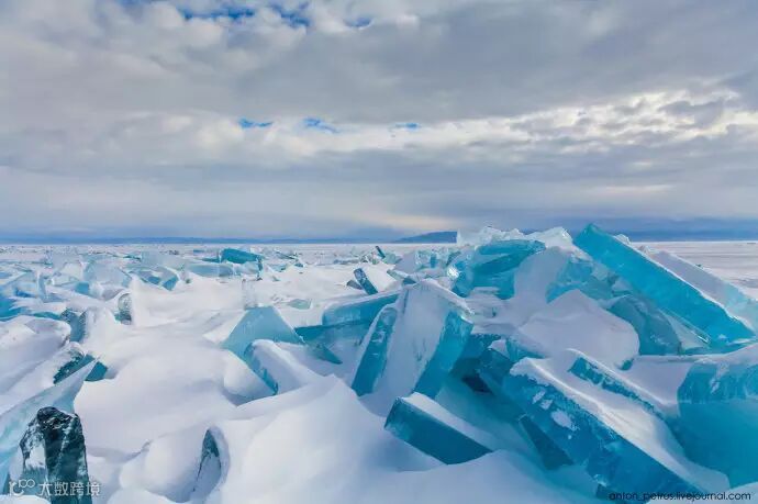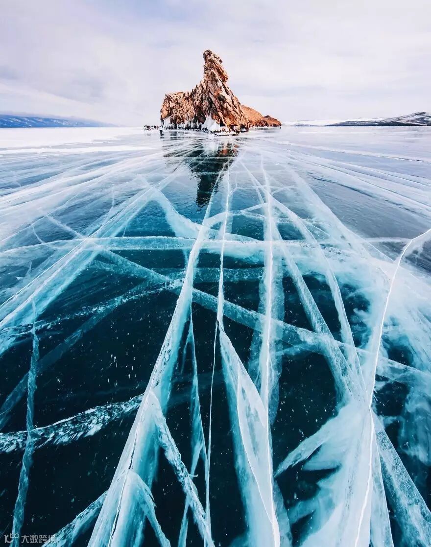 而到了三月,由于昼夜温差变大,冰面开始出现了纵横交错的裂痕,而这时的贝加尔湖也迎来了人们最想要看的梦幻的景色。