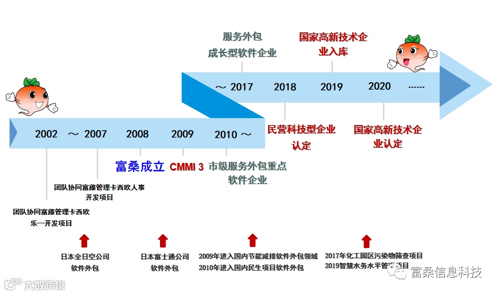 2009年进入国内节能减排软件外包领域,2010年进入国内民生项目软件外包领域,同年被评为市级服务外包重点软件企业。
