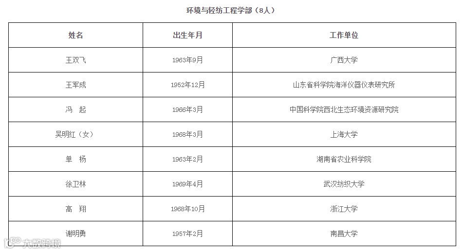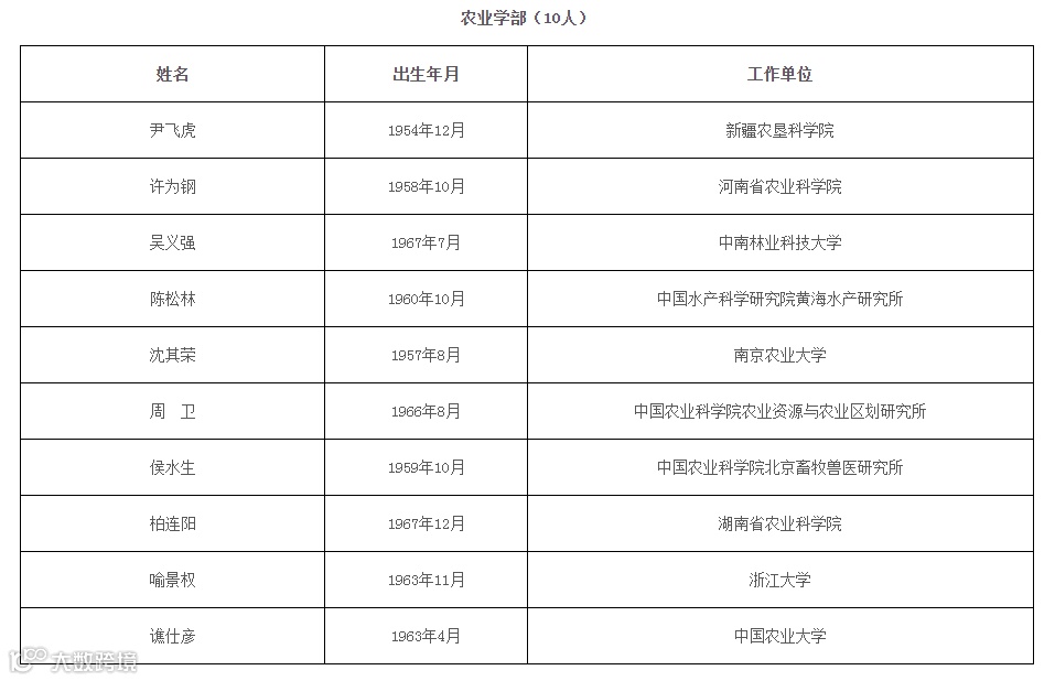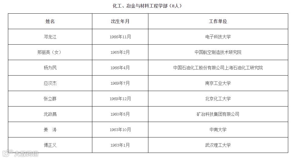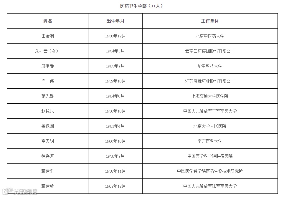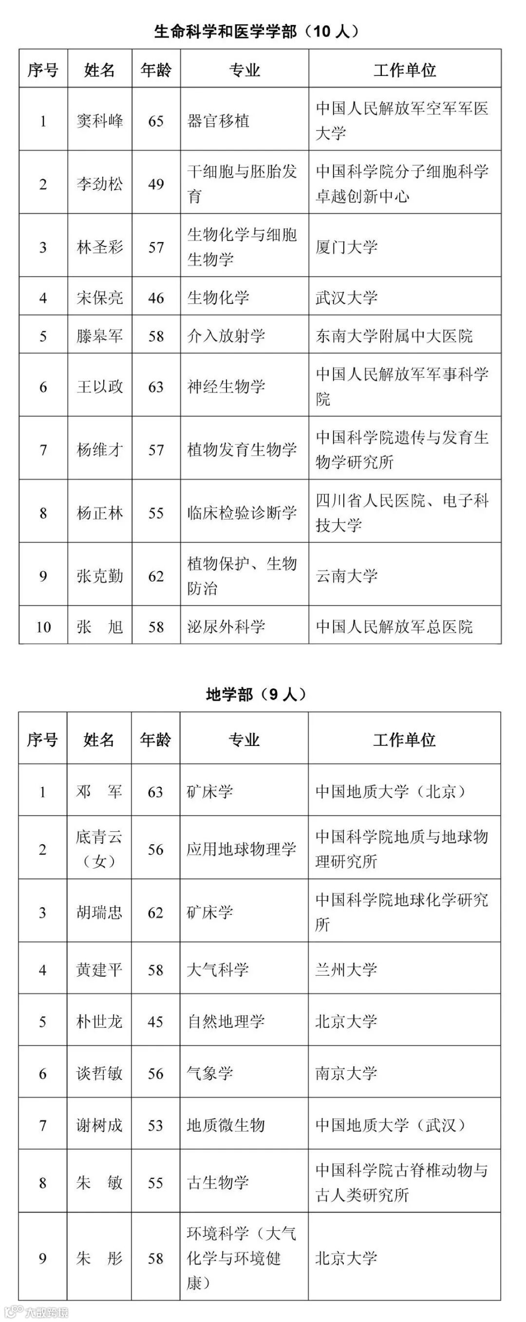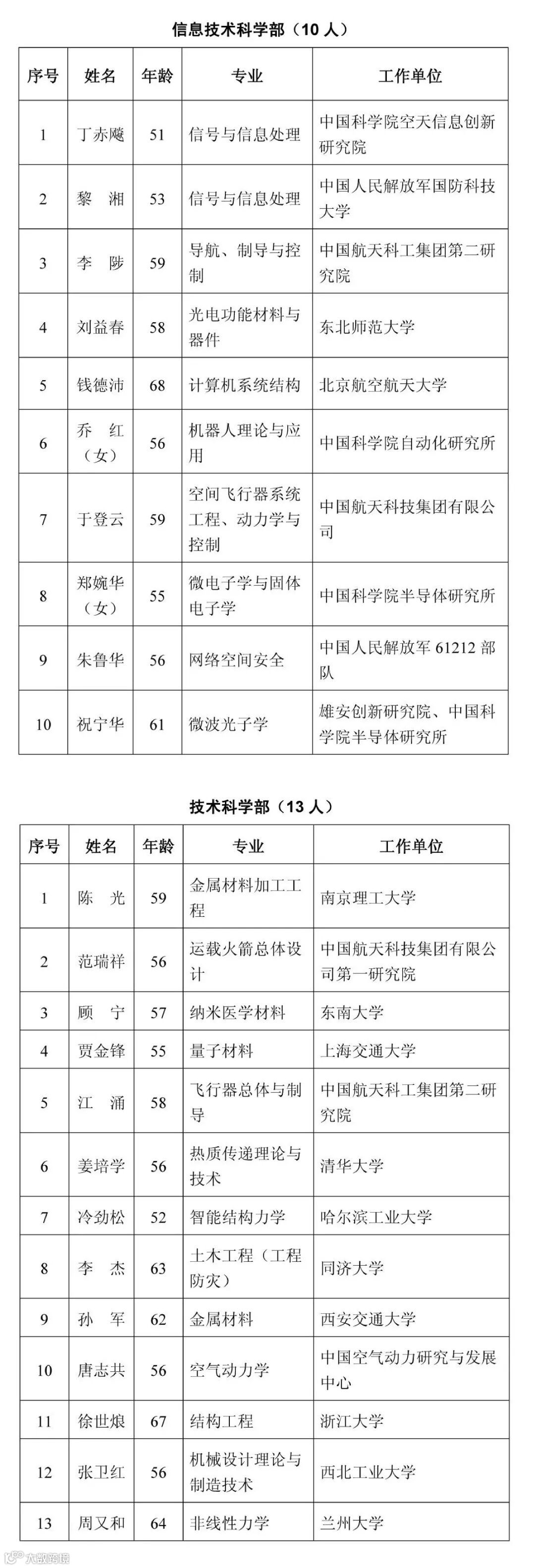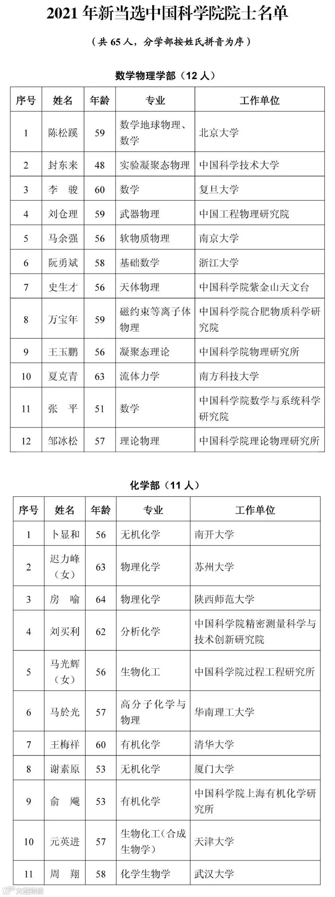 2021年新当选中国科学院院士名单