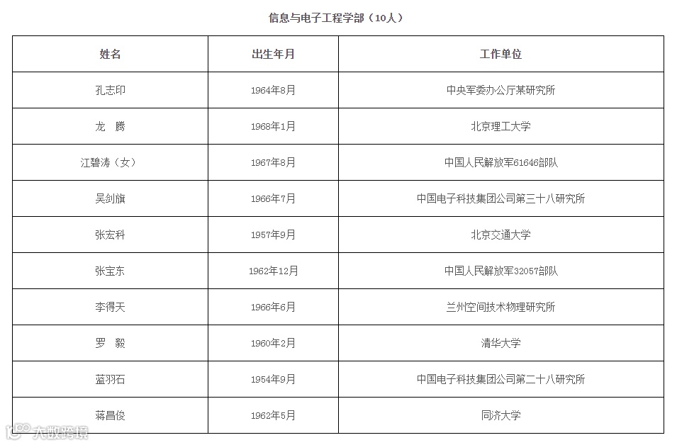 65人新当选为中国科学院院士