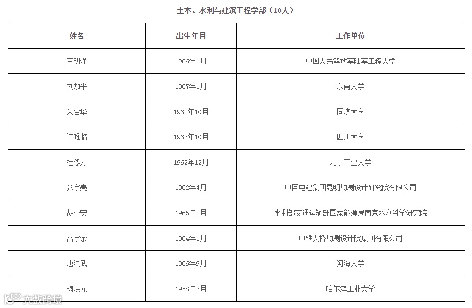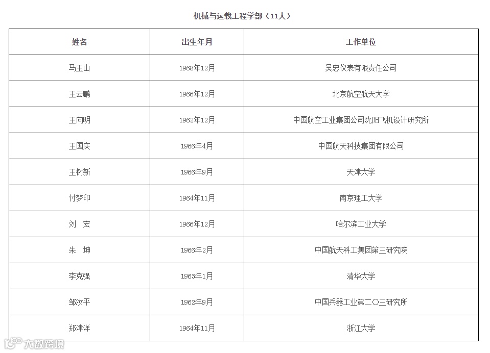 中国工程院2021年当选院士名单