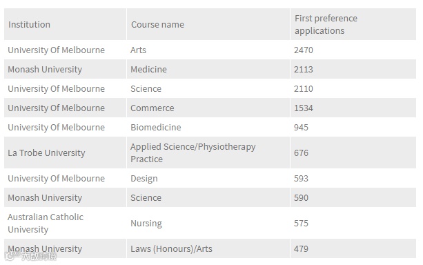 今年维州一共有6万多人报考了大学,其中大多是12年级的毕业生。报考最多的大学专业是墨尔本大学的艺术专业,有2470人的第一志愿都是填的它,不出意外的话,其中大约2000人明年都会就读这个专业。