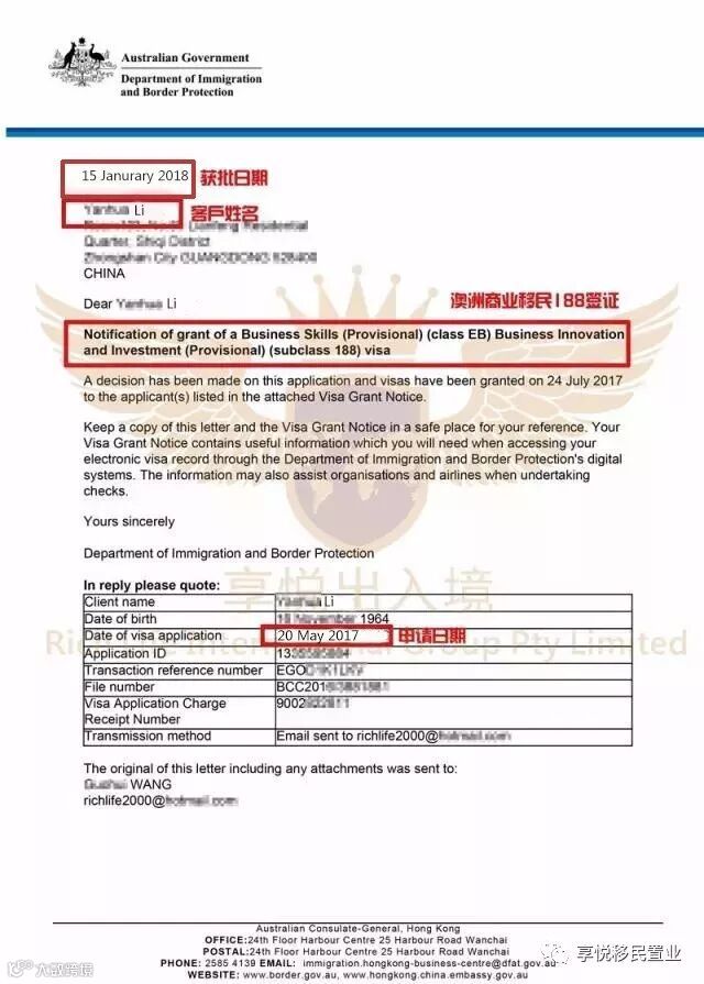 签证申请递交之后,通常的等待时间在1年左右。在此期间,我们根据签证官的要求,通知L小姐完成了体检,并最终在2018年1月的时候,收到了L小姐的签证批准信!