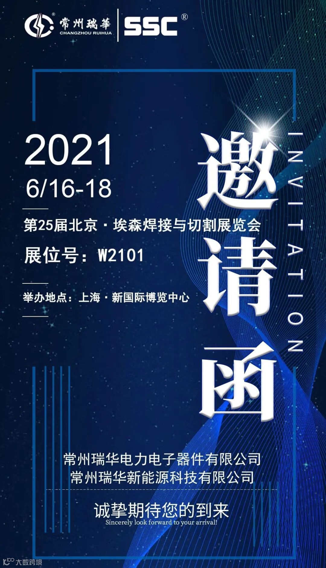 第25届北京·埃森焊接与切割展览会于明日盛大开幕,为期三天。这次展会常州瑞华将带来最新研发的产品,分享众多技术解决方案,诚邀您莅临展台参观与交流。展位号:W2101