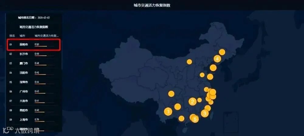 今年2月19日,新华社国家高端智库舆情研究中心——新华网思客通过多维度的大数据分析显示,昆明复工率达到40%,在全国处于靠前位置;3月3日,一份城市交通活力恢复指数排行榜显示,自2月10日起,全国交通出行活力稳步提升,昆明成为全国各大城市中交通活力恢复最快的城市。