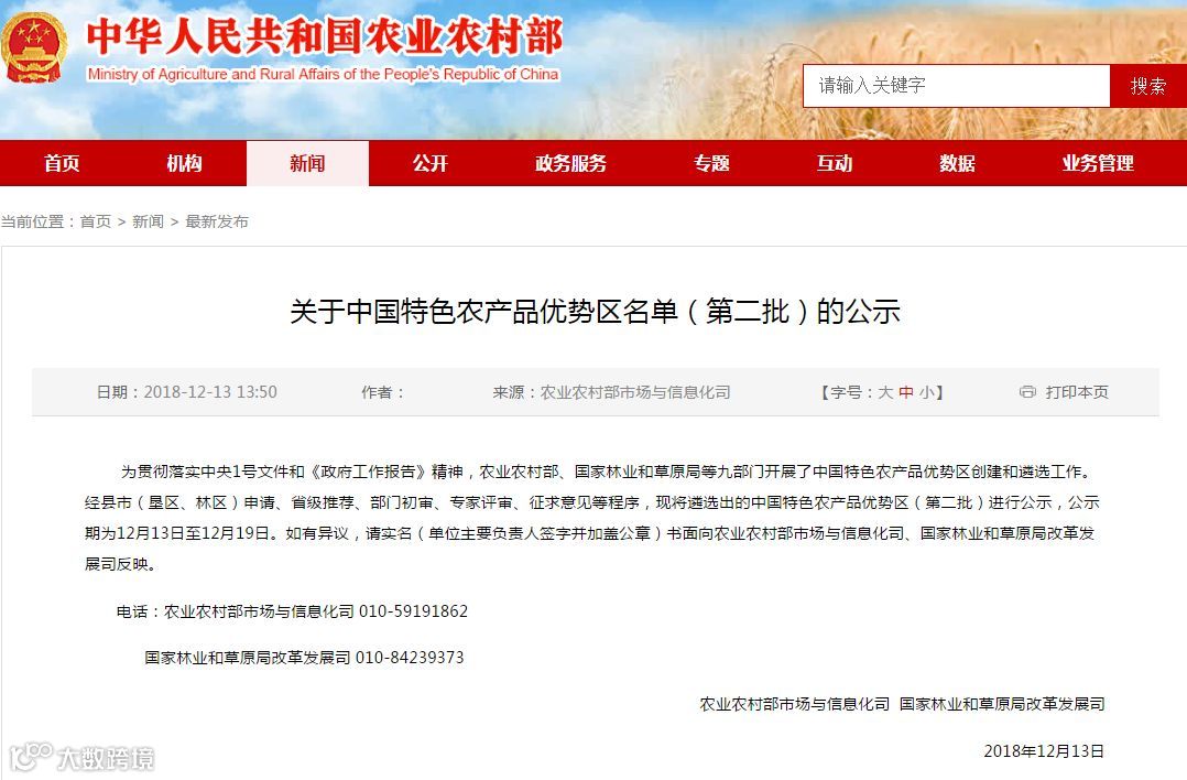 2.河北省怀来县怀来葡萄中国特色农产品优势区