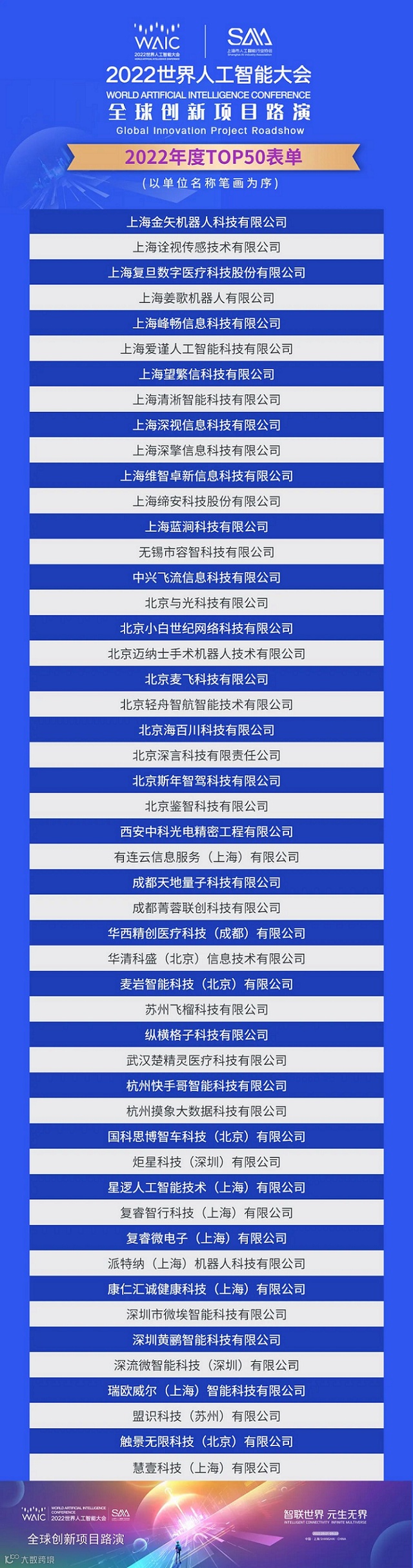 世界人工智能大会是由国家发展和改革委员会、工业和信息化部、科学技术部、国家互联网信息办公室、中国科学院、中国工程院、中国科学技术协会、上海市人民政府共同主办的国际型大会。目前,大会已逐步成长为全球人工智能领域最具影响力的行业盛会,全球创新项目路演是深刻体现世界人工智能大会国际化水平的重要活动之一。