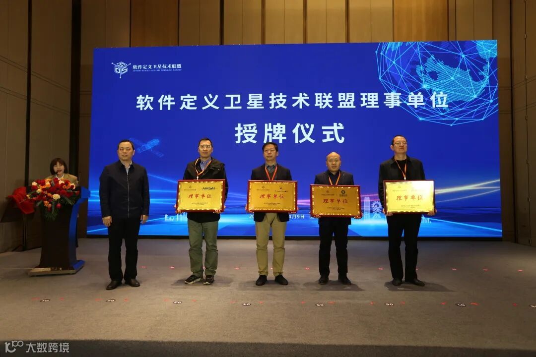 同时会上进行了软件定义卫星技术联盟理事会授牌仪式,我公司副总经理哈锦成先生作为代表上台领牌并合影留念。