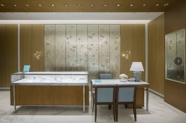 蒂芙尼无锡八佰伴专卖店设计承袭蒂芙尼纽约第五大道旗舰店的设计风格,旗舰店外墙上的凹槽纹饰和麦穗图案的花雕玻璃幕墙都于此重现,蒂芙尼蓝色背光灯赋予浪漫优雅传承。店内设计同样承继蒂芙尼创始人之子、传奇艺术和设计大师路易斯·康福特·蒂芙尼(Louis Comfort Tiffany)先生的创作灵感,以淡黄色天鹅绒墙面映衬金质木兰花壁灯,诠释来自纽约的奢华魅力。