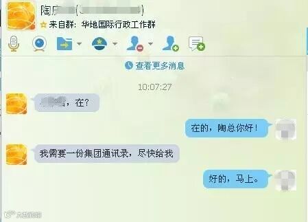 通讯录属于公司保密信息,仅限于获得授权的行政人员通过公司邮箱公对公发送,不得在任何社交工具上透露集团通讯录。