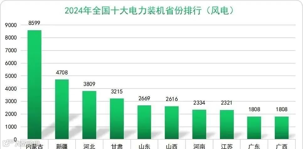 装机量排名前三的省份是内蒙古、新疆和河北,它们的装机量分别是8599万千瓦、4708万千瓦和3809万千瓦。