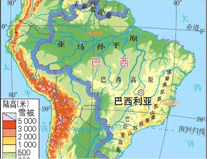 巴西国土的80%位于热带地区。北部亚马孙平原属赤道(热带)雨林气候,年平均气温 27-29℃。中部高原属热带草原气候,分旱、雨两季,年平均气温18-28℃。南部地区年平均 气温16-19℃,属亚热带气候。 巴西北部大部分地区没有真正的旱季,但在一年中降雨最多的时期有变化。中部地区降 雨更具季节性,属热带稀树草原气候。东北部内陆地区季节性降水更为极端,半干旱气候区 的降雨量通常少于800毫米,历史上这一地区曾出现严重旱灾。南部和东南部部分地区全年 降雨,冬季霜冻十分普遍,山地偶有降雪。