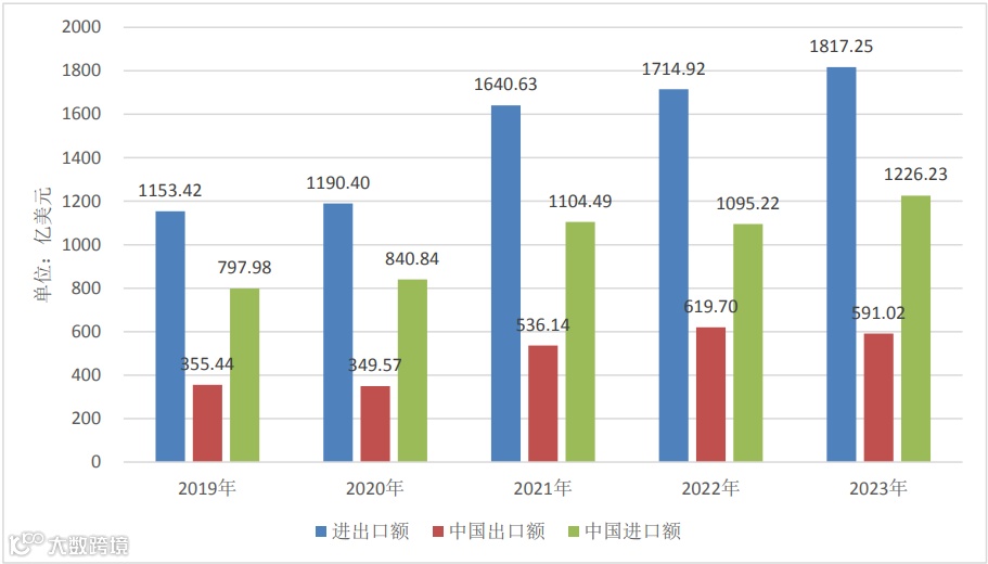自2009年起,中国连续15年稳居巴西第一大贸易伙伴的地位。2023年,中国是巴 西第一大出口市场和第一大进口来源地。巴西是中国在拉美地区最大的贸易伙伴。中国海关数据显示,2023年,中国与巴西双边货物进出口额为1817.25亿美元,同比增长 5.97%。其中,中国对巴西出口额591.02亿美元,同比下降4.63%;中国自巴西进口额 1226.23亿美元,同比增长11.96%。
