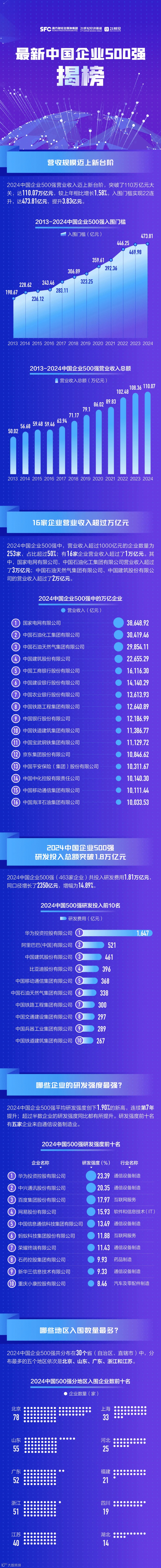 二、今年中国企业500强营收总额为110.07万亿元。