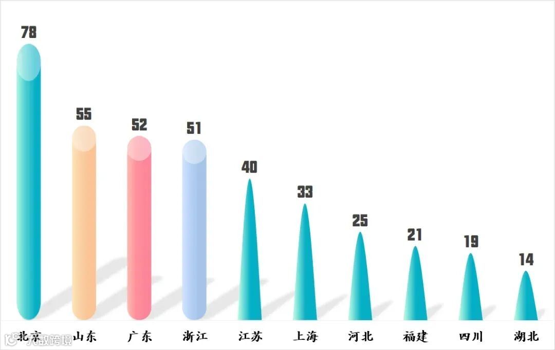 三、入围企业数量最多的是北京,其次是山东、广东、浙江、江苏。