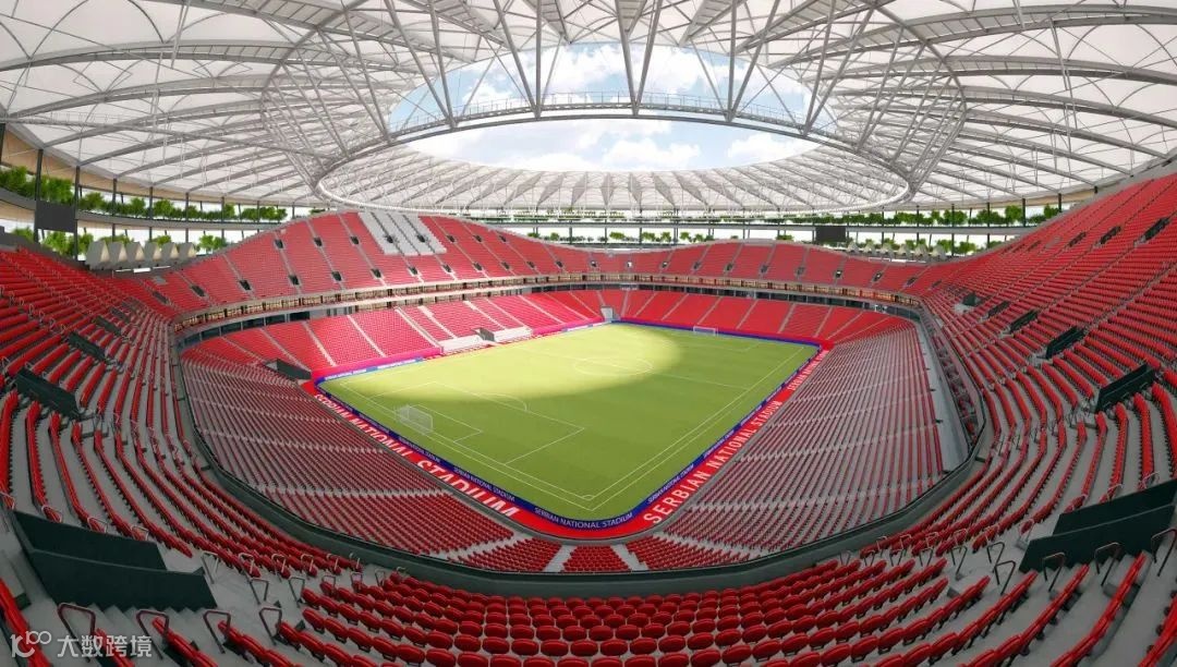 项目介绍:项目是塞尔维亚国家优先发展的重大项目,位于贝尔格莱德市西南部苏尔钦区,总建筑面积约7.6万平方米。该项目旨在打造一座符合国际足球联合会(FIFA)世界杯和欧洲足球协会联盟(UEFA)欧洲杯双重标准的大型体育场馆,设计容量超50,000名观众,计划采用“花园式”设计,树木和灌木丛覆盖球场的三个楼层。预计2026年12月1日之前竣工。