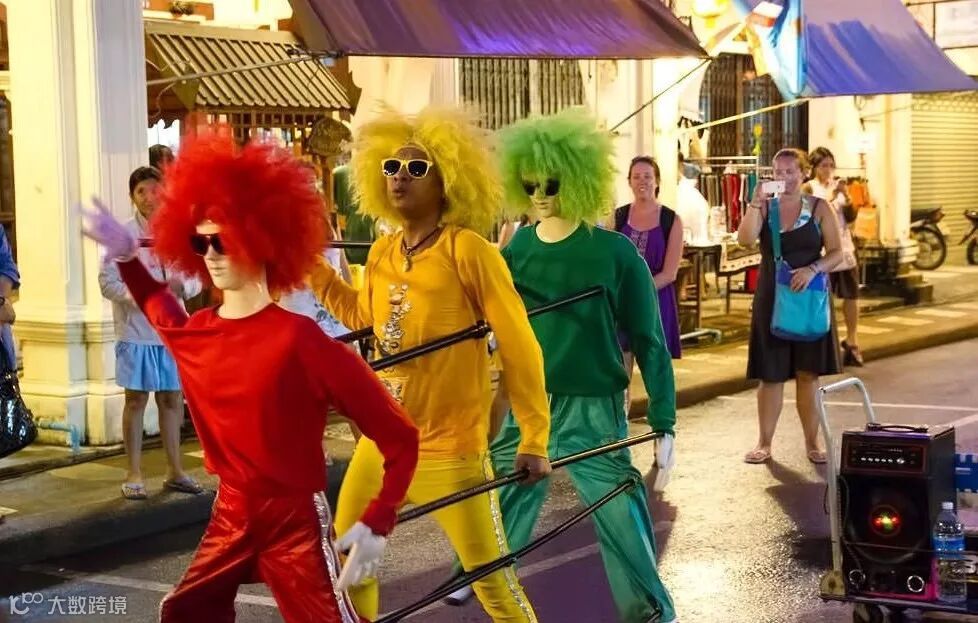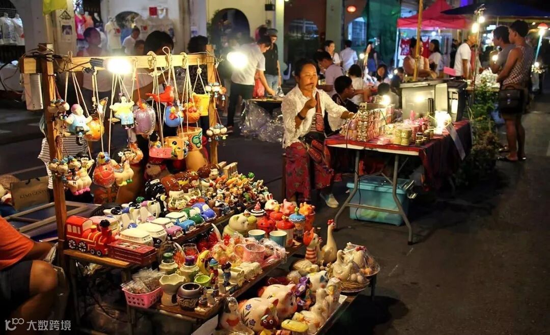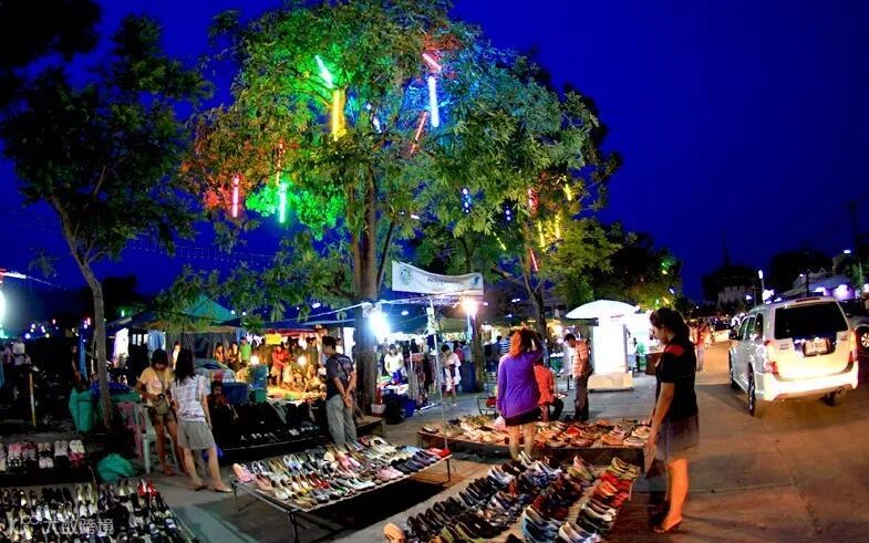 中葡风格的古老房子林立在 350 米长的街道上,点亮的灯光给建筑披上靓丽的色彩。房子之间的空地成了一个聚宝盆,汇集了传统当地食品、泰式手工艺品、当然也包括 T 恤、连衣裙、鞋子和其他服装品。在货摊之间会看到一些街头艺人和表演者。购物间隙,可以娱乐消遣一下。