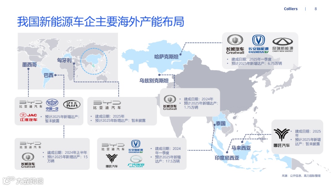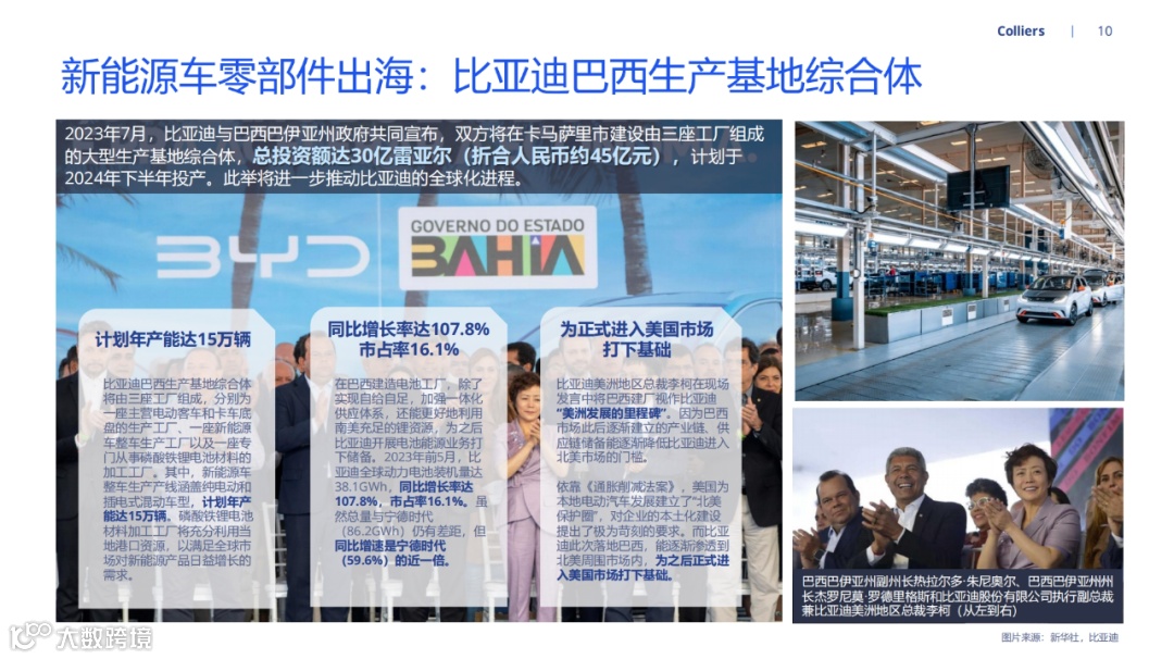 报告指出,中国新能源汽车的出海历程标志着从产品出口到产能及产业链出海的新趋势。以比亚迪为例,该企业不仅成功进入欧洲等高势能市场,还积极在泰国、巴西等地投资建厂,预计2024至2025年将迎来海外产能的高峰期。