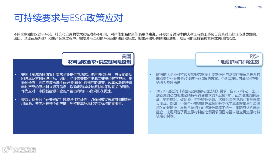 在政策层面,不同国家和地区对环境、社会和治理(ESG)的要求日益严格。例如,欧盟即将实施的“电池护照”和美国的材料回收要求,都对中国新能源汽车产业提出了新的合规挑战。此外,充电基础设施的建设也是中国企业出海需要考虑的关键因素。
