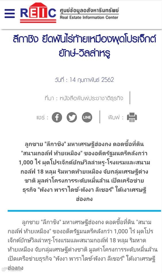 此外,根据盈科大衍地产发展有限公司(PCPD)公司的年度审计报告,泰国攀牙府的房地产开发计划也已确定。在该公司官网上显示,盈科大衍地产发展有限公司(PCPD)在2018年12月3日召开董事会,该公司旗下的“Hi Game Golf”合资公司,将在泰国攀牙府(Phang Nga)经营房地产开发业务。