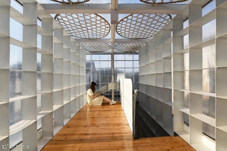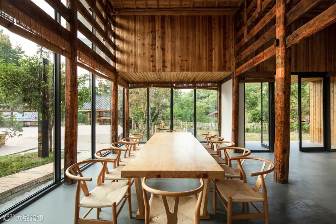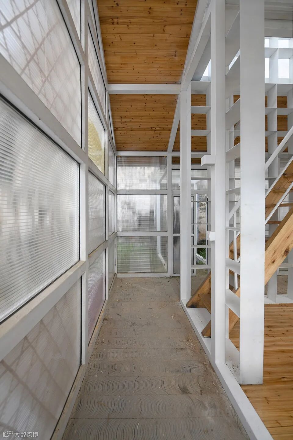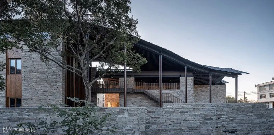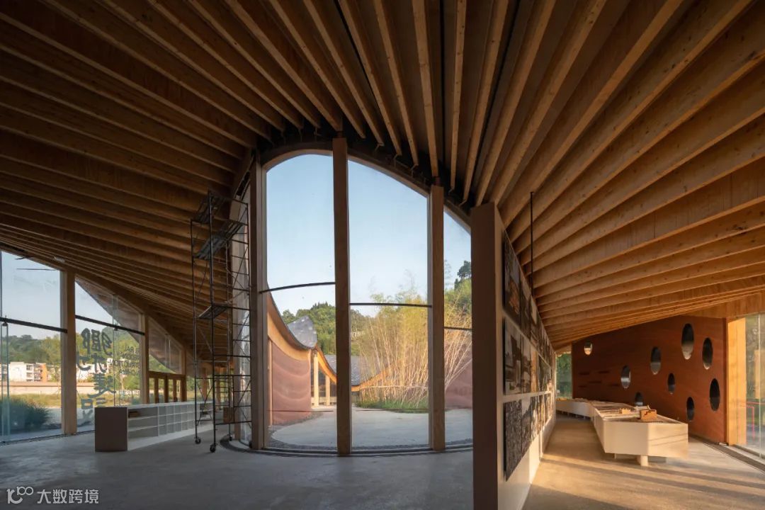 田园大讲堂临河而建,位于居民生活区和村子的「门户」之间,建筑师将其设定为「讲堂」,希望能借此建立外界与村民的连接,并输出袈蓝在乡村振兴领域经过实践验证的价值观与方法论,让村民看到、感知到新设计与新产业能够带来的新未来,展望乡村自治的可能性。