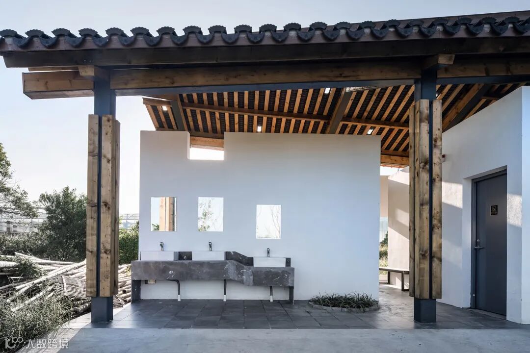 项目包含了黄厝寮村的两个重要公共空间节点:位于村头的村民中心以及位于村尾的湿地中心。村民中心建设了一个758㎡的开敞架构,以设置黄厝寮村村民停车场、卫生间、小卖部、村民休憩空间、农科辅导用房等需求。湿地中心面积400㎡,设置卫生间、小卖部供游客村民使用,并修缮了村民用以祭祀、集会的祭祀广场,在农忙时也作为晒谷、休憩的场所使用。