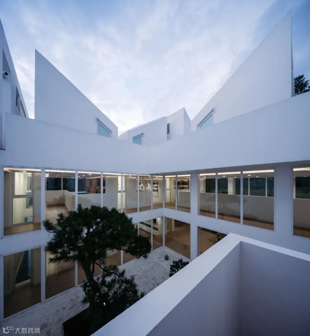 我们采用聚落的设计手法,让五幢建筑由分散变聚落,用连廊的设计手法去连接现有建筑。连廊除平等了建筑主体外,还围合形成了功能型庭院,增加功能使用性。